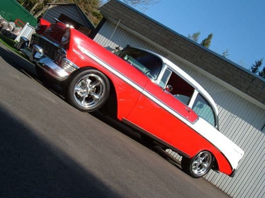 1956 Chevrolet Bel Air. Great looking old car in red and white. Loving the chrome too!