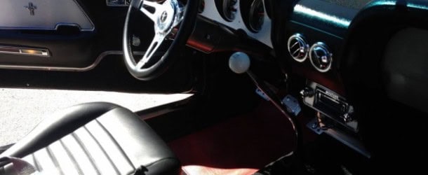 The interior of a 1969 Ford Mustang Fastback packing a new Ford Racing 427/540HP engine backed by a 6-speed.