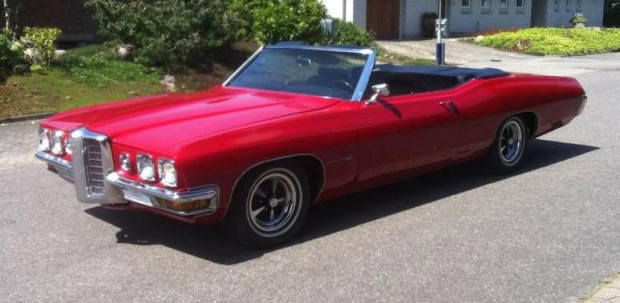 1970 Pontiac Bonneville Convertible muscle car looking hot in red.