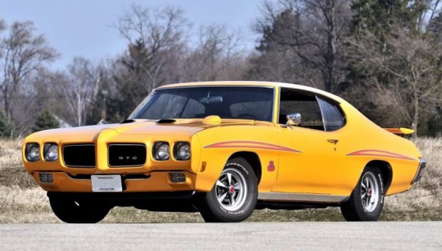 1970 Pontiac GTO. Muscle car in yellow.