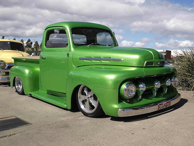 Classic Ford Pickup Truck. Picturesque custom car with an amazing rusty brown and green paint job, white wall tires and … Read more